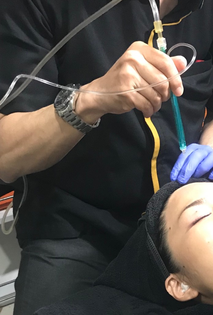 時間は10〜15分ほどで終わります。水と酸素なので始終気持ち良く、全く痛くもないです。