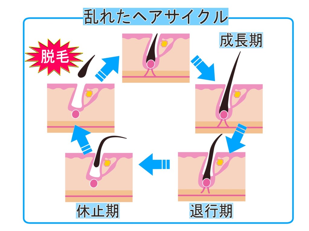 ヘアサイクルの成長期を縮める原因と考えられる要素を排除、抑制することがカギになります。