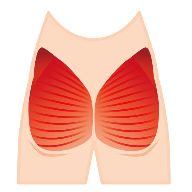 大臀筋はお尻にある大きな筋肉で、使わずに筋肉が痩せ細ってしまうと尻が垂れ下がっているように見え、引き締まっていると丸みを帯びたキレイな形のお尻になります。