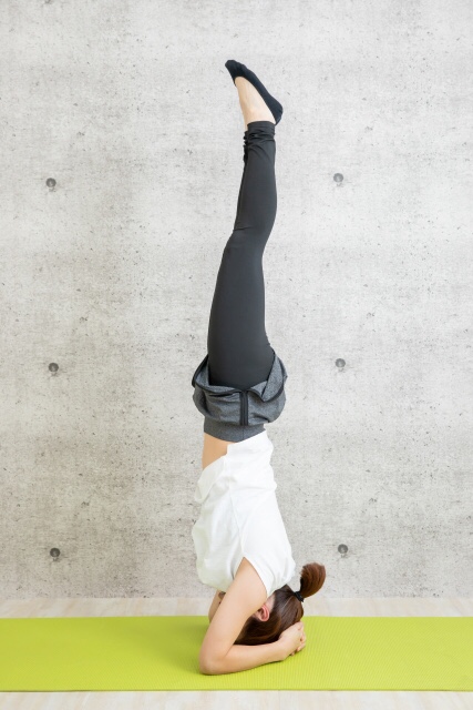 ※ ヘッドスタンドのポーズが出来ない場合は、頭頂部をマッサージするだけでかまいません。