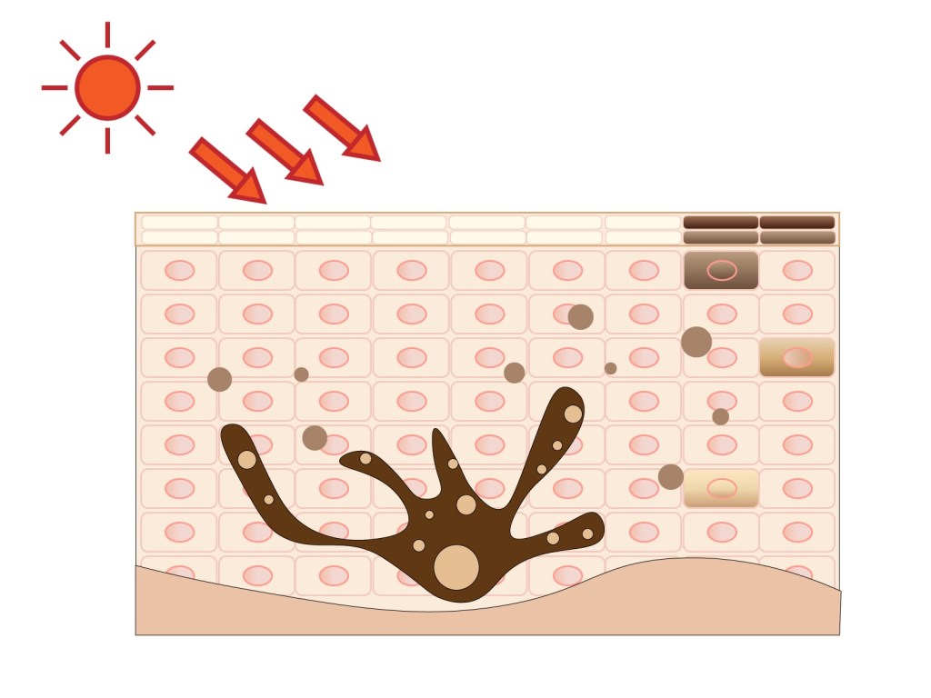 ターンオーバーで表皮に現れることでシミとなる