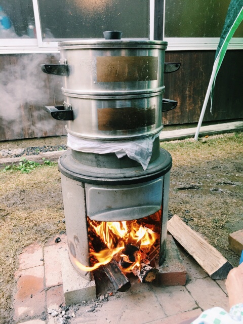 程良い風と、ちょうどいい火加減、適切な分量でお米を炊いている状況です。