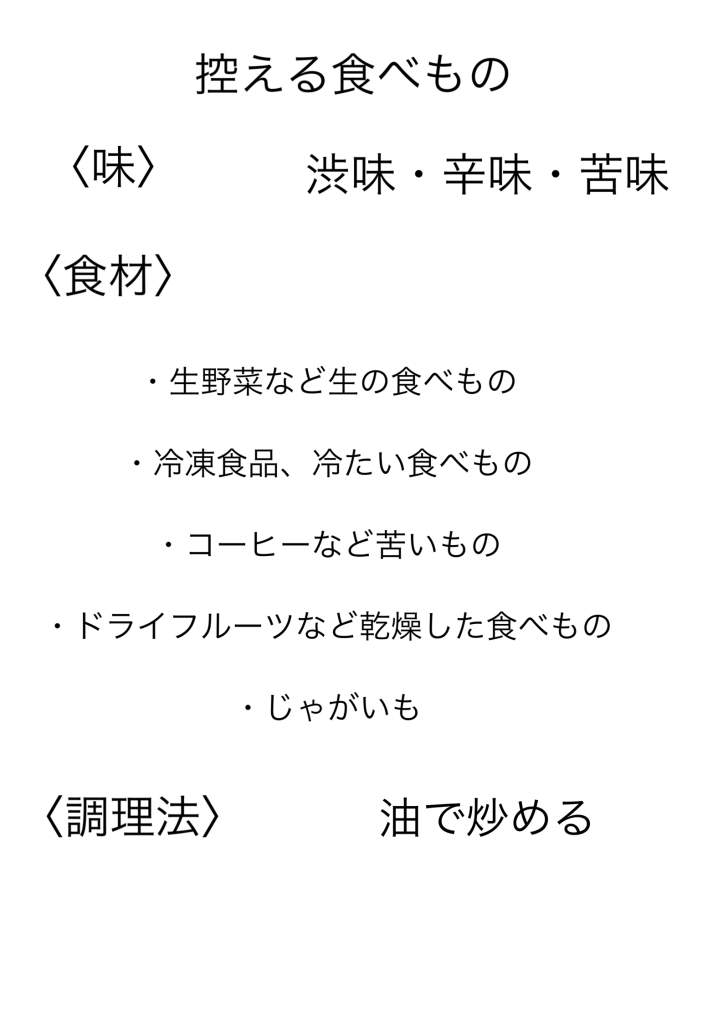 また、消化力が弱いため生モノは避けた方がよいでしょう。