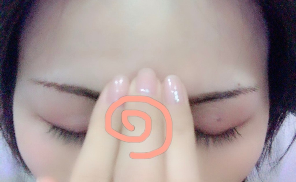 眉間に人差し指、中指、薬指を当てて、圧をかけながら指をクルクルと回します。